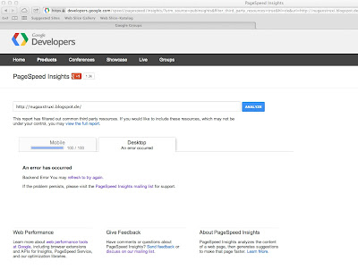 PageSpeed Insights für Desktop-Content: Fehler beim Aufruf |