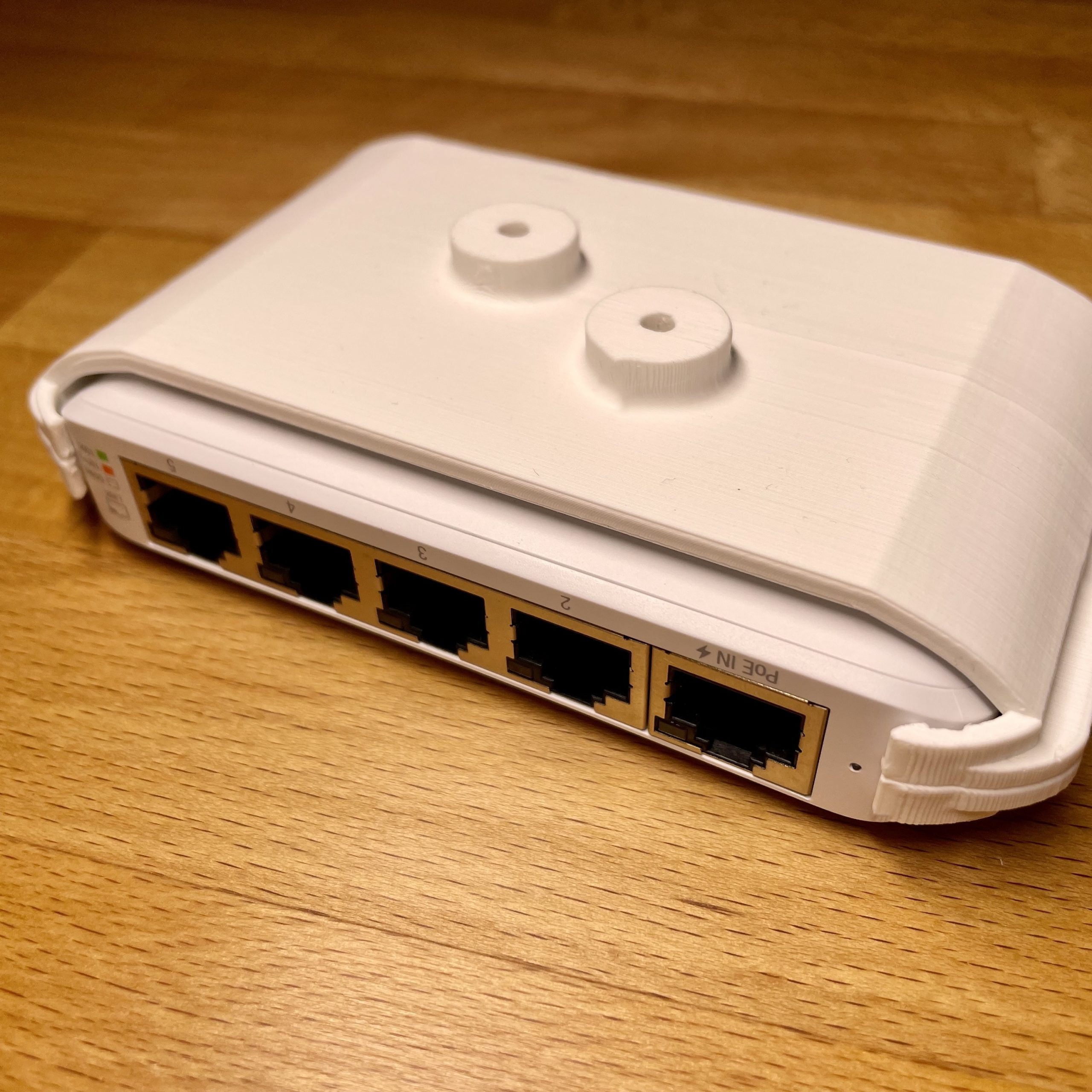Dein UniFi Flex Mini liegt irgendwo rum? Möglicherweise verliert der Switch die Verbindung, wenn man am Kabel hängen bleibt. Damit ist nun Schluss! Die beidseitige Halterung für den UniFi Switch Flex Mini für die Wandmontage löst das Chaos.